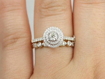 0.70ct 14kt Vintage Diamond Double Round Halo Bridal Set