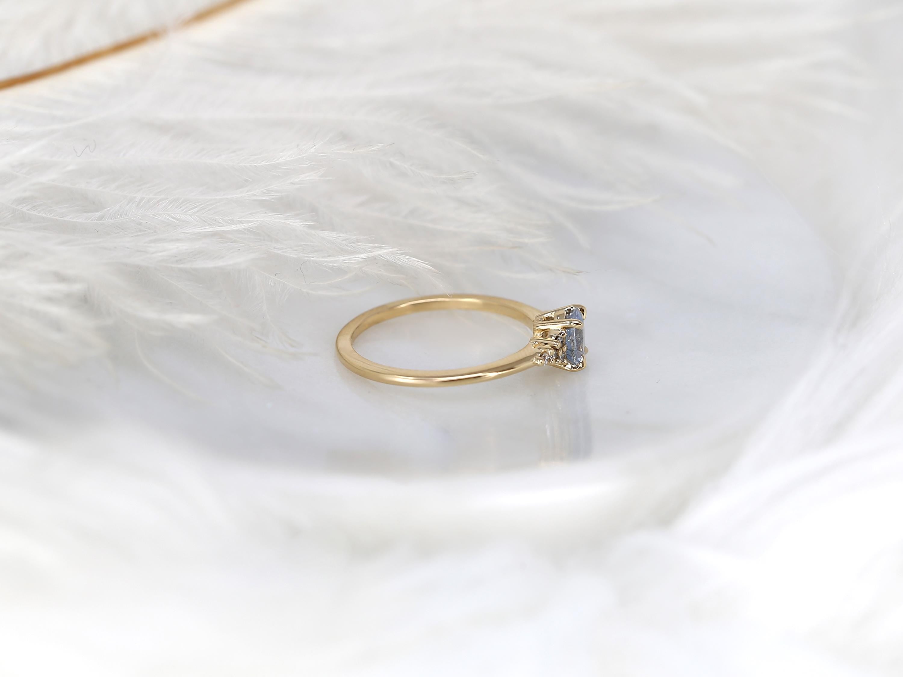 The Maddy ring glows with celestial grace and gentle color. At its heart lies a 0.63ct oval cornflower sapphire, its natural hue a rare blend of sky and twilight. Dainty pavé diamonds sparkle around it like scattered stardust, adding a touch of ethereal light. Handset in 14kt yellow gold, this one-of-a-kind piece captures both delicacy and depth. Ready to ship after resizing, it’s a perfect September birthstone treasure or meaningful gift for someone special.