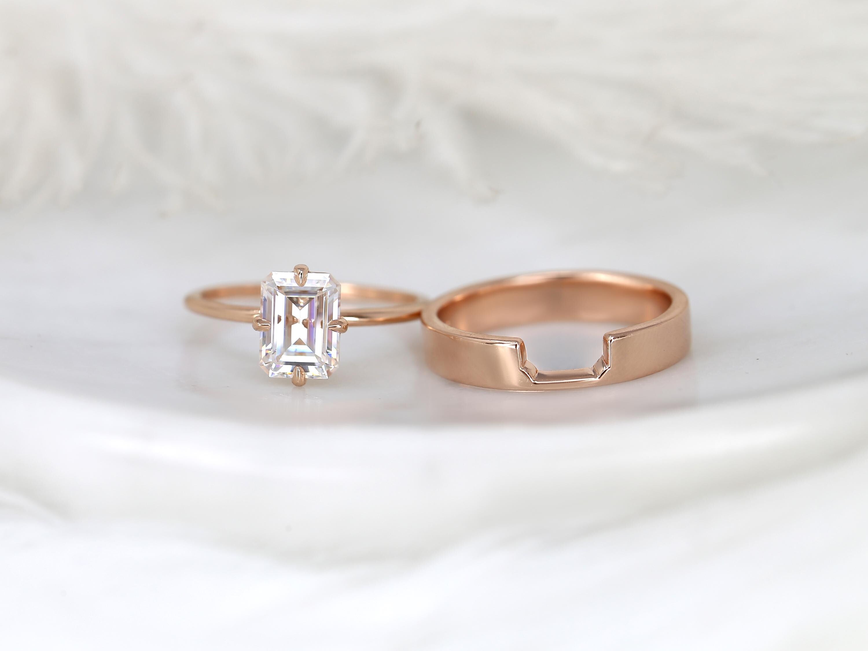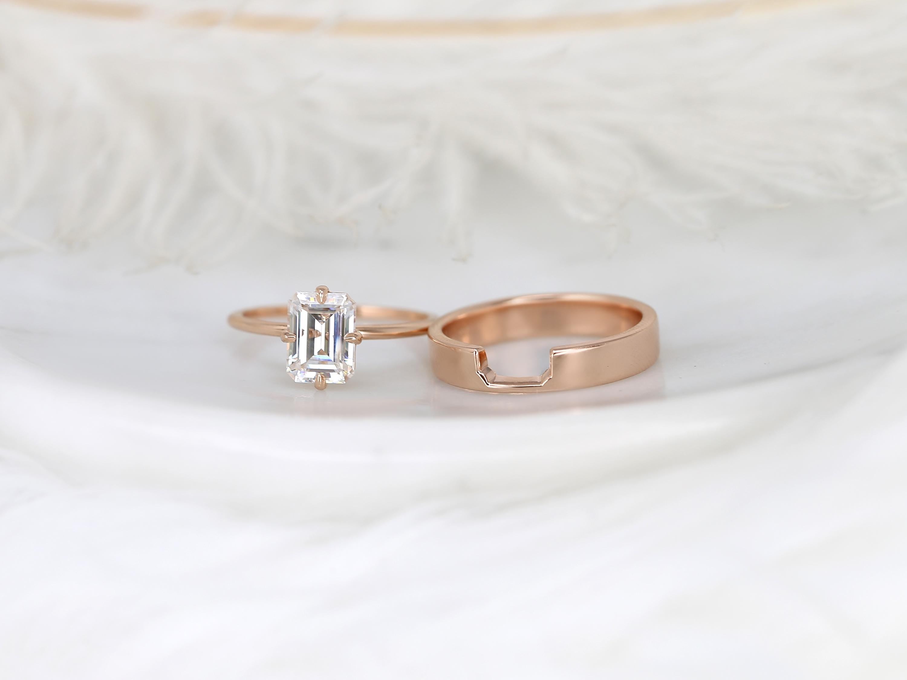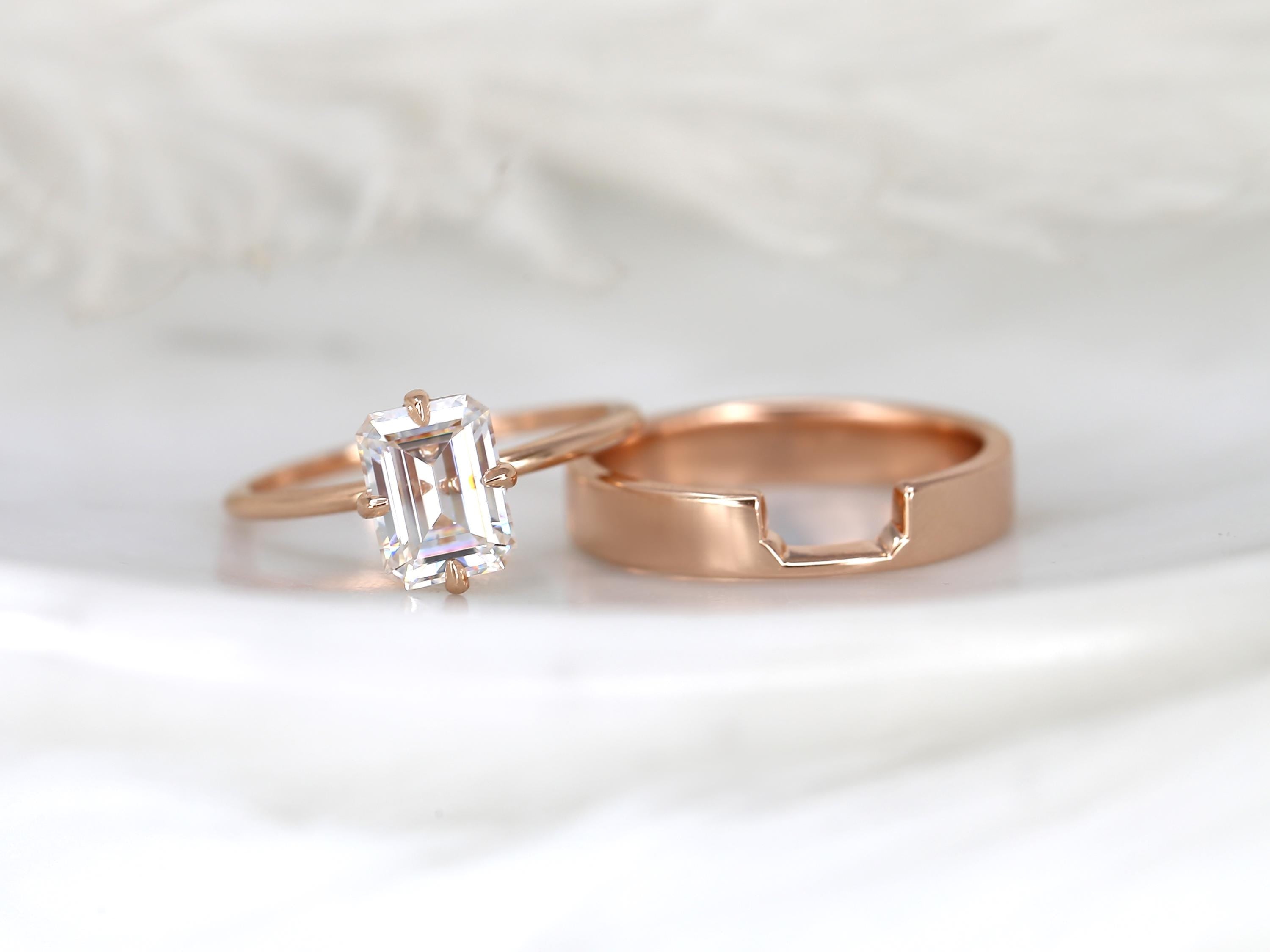 1.75ct Ruth 8x6mm & Codi 14kt Moissanite Emerald Cut Solitaire Bridal Set