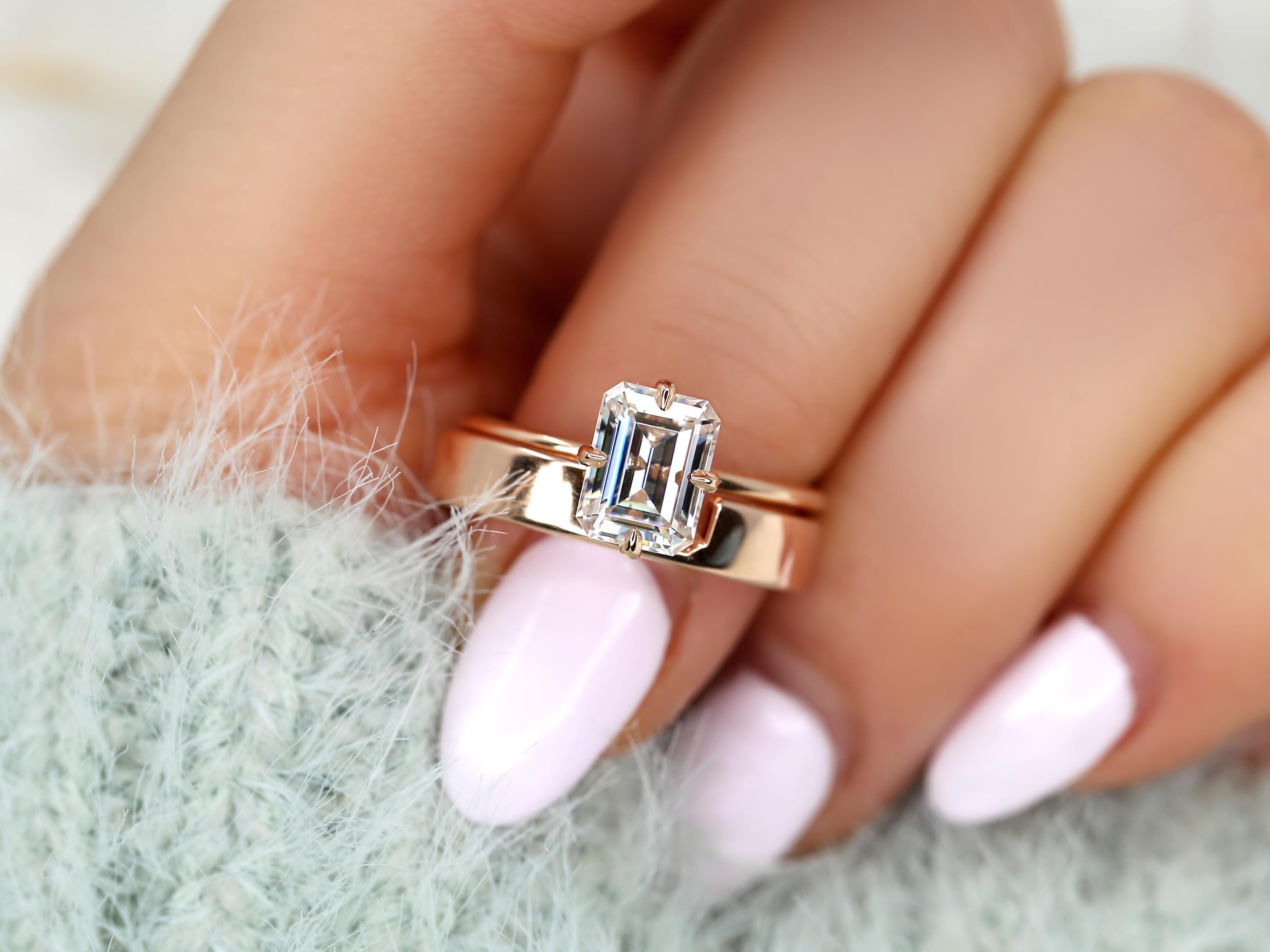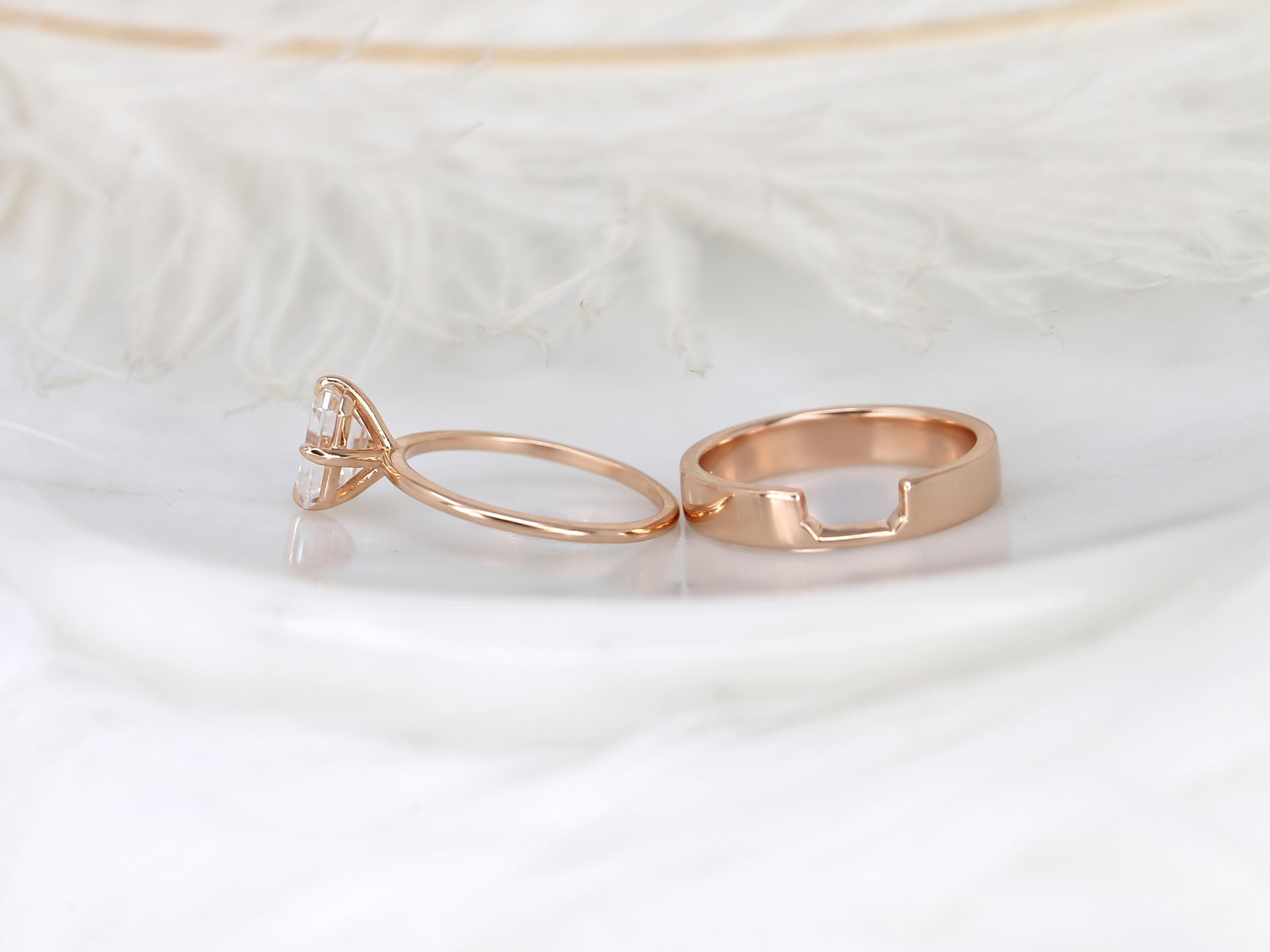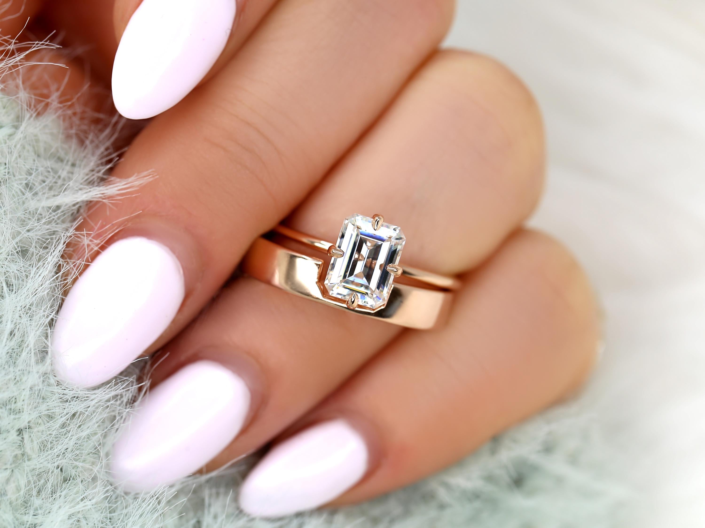 1.75ct Ruth 8x6mm & Codi 14kt Moissanite Emerald Cut Solitaire Bridal Set