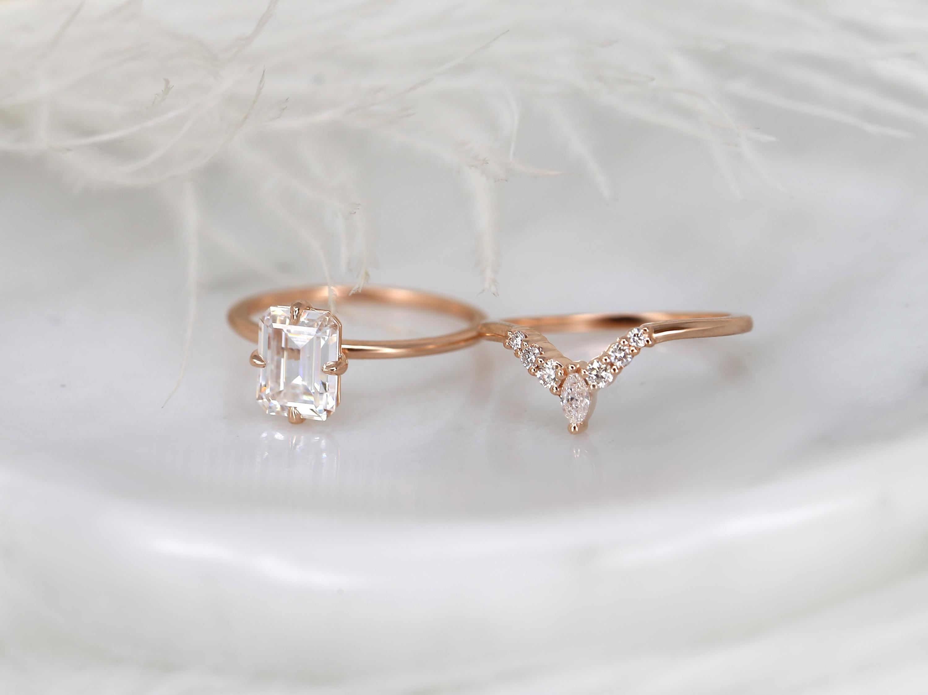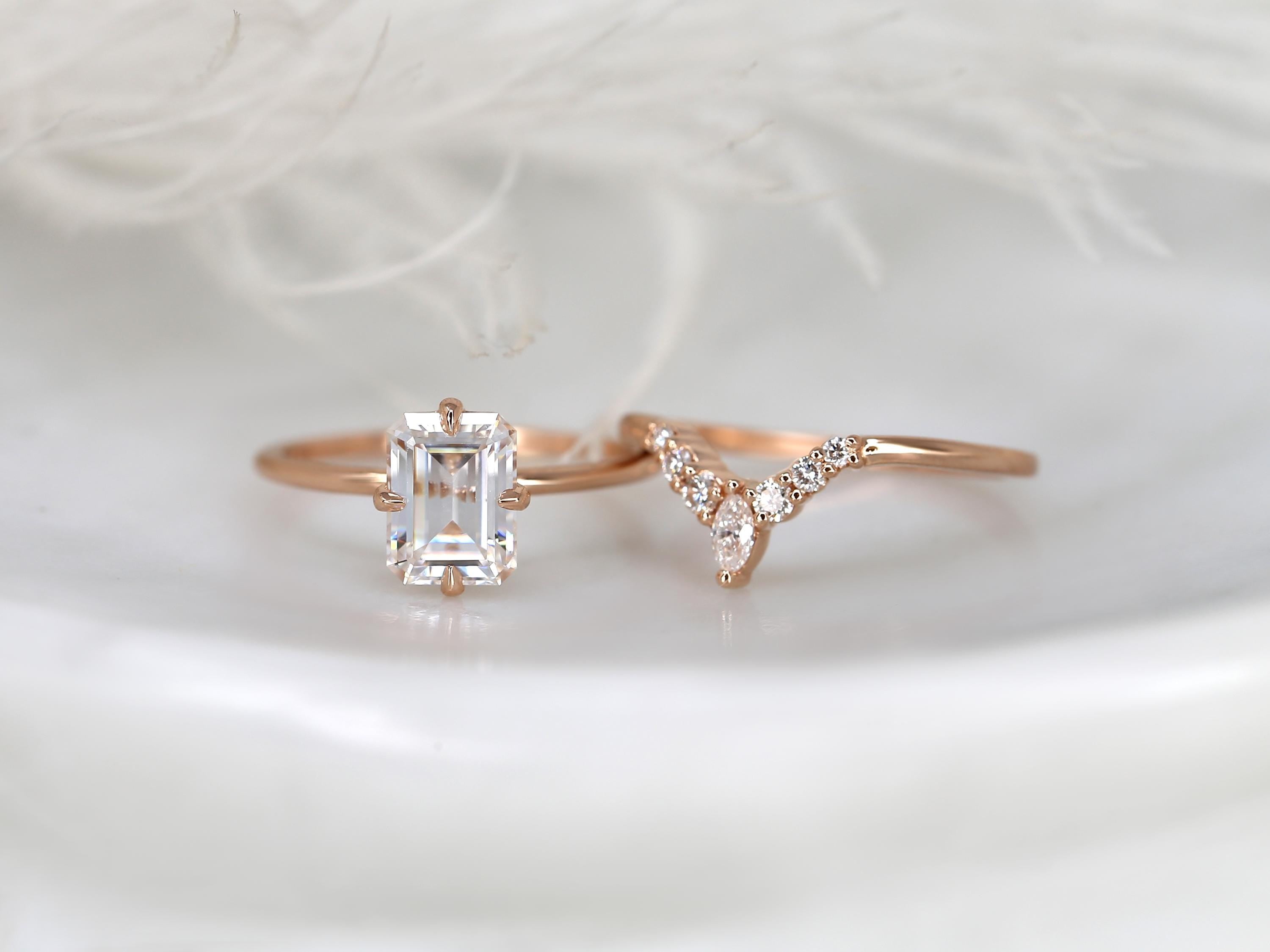 1.75cts Ruth 8x6mm & Kendall 14kt Moissanite Emerald Cut Solitaire Bridal Set