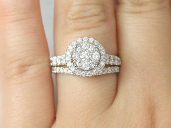 1ct 14kt Two-Toned Vintage Diamond Cluster Round Halo Bridal Set