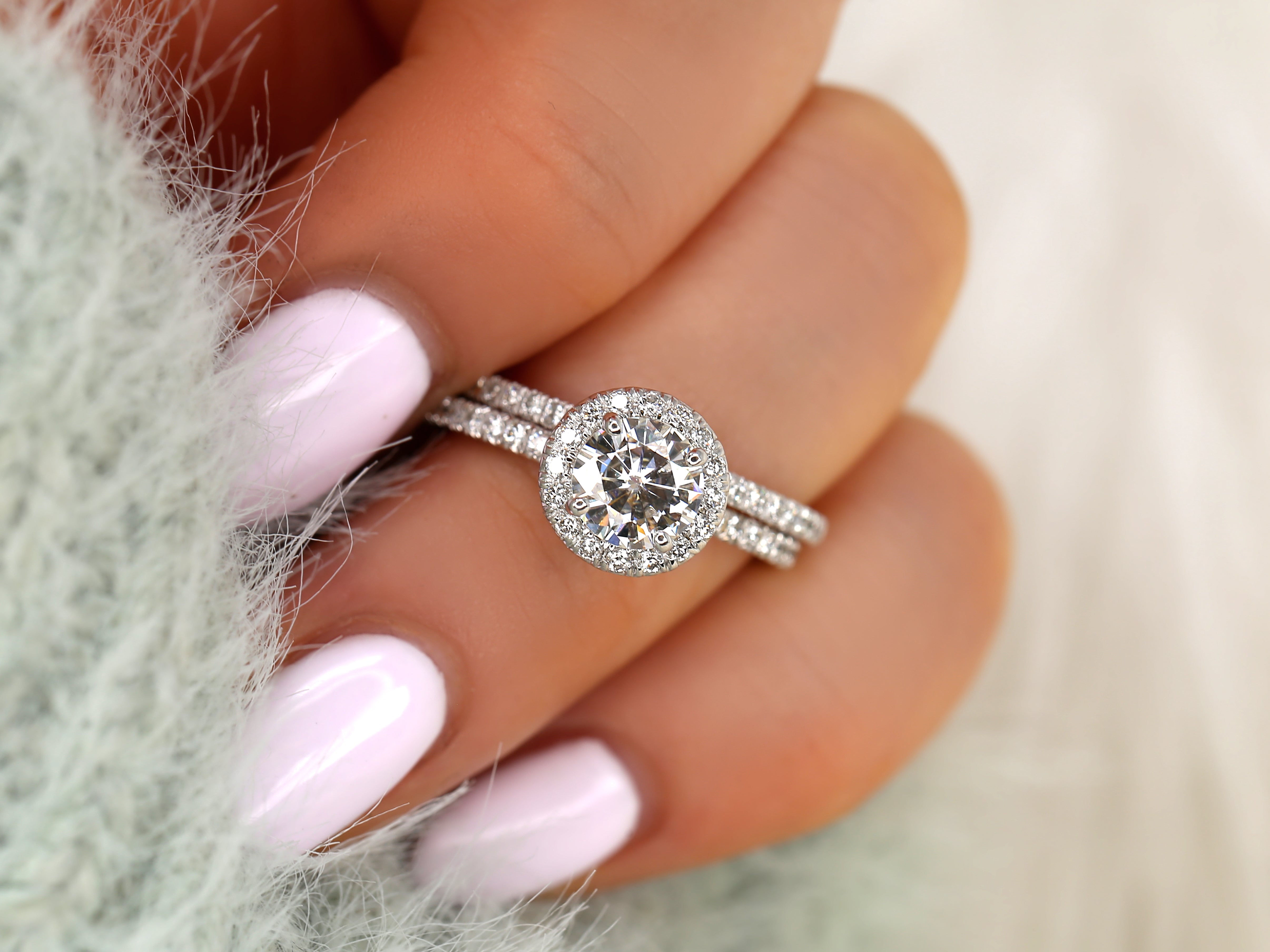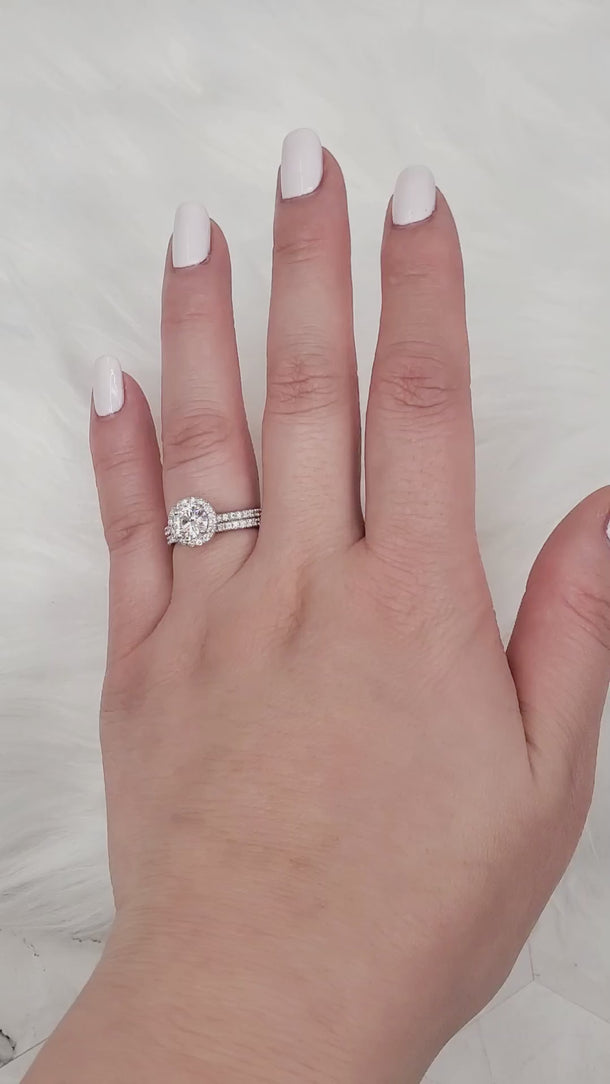 1ct Callie 6.5mm 14kt Moissanite Diamond Round Halo Bridal Set