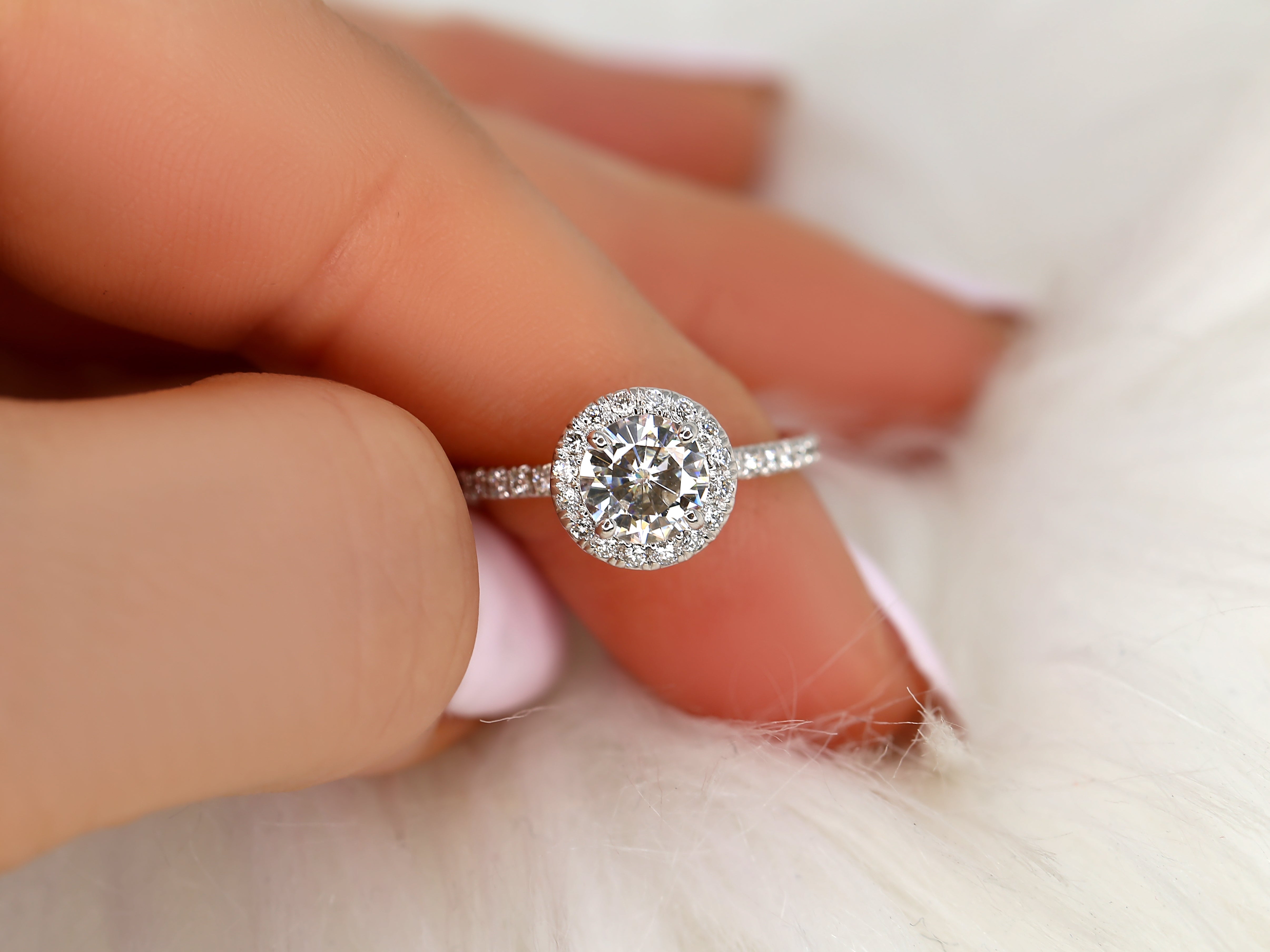 1ct Callie 6.5mm 14kt Moissanite Diamonds Round Halo Ring