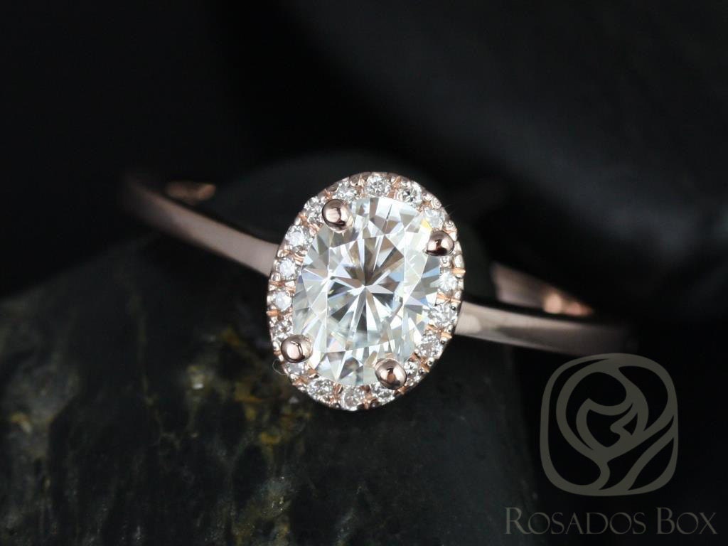 1ct Celeste 7x5mm 14kt Moissanite Diamonds Oval Halo Ring