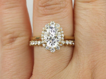 2ct Electra 9x7mm 14ktMoissanite Diamonds Unique Oval Halo Bridal Set