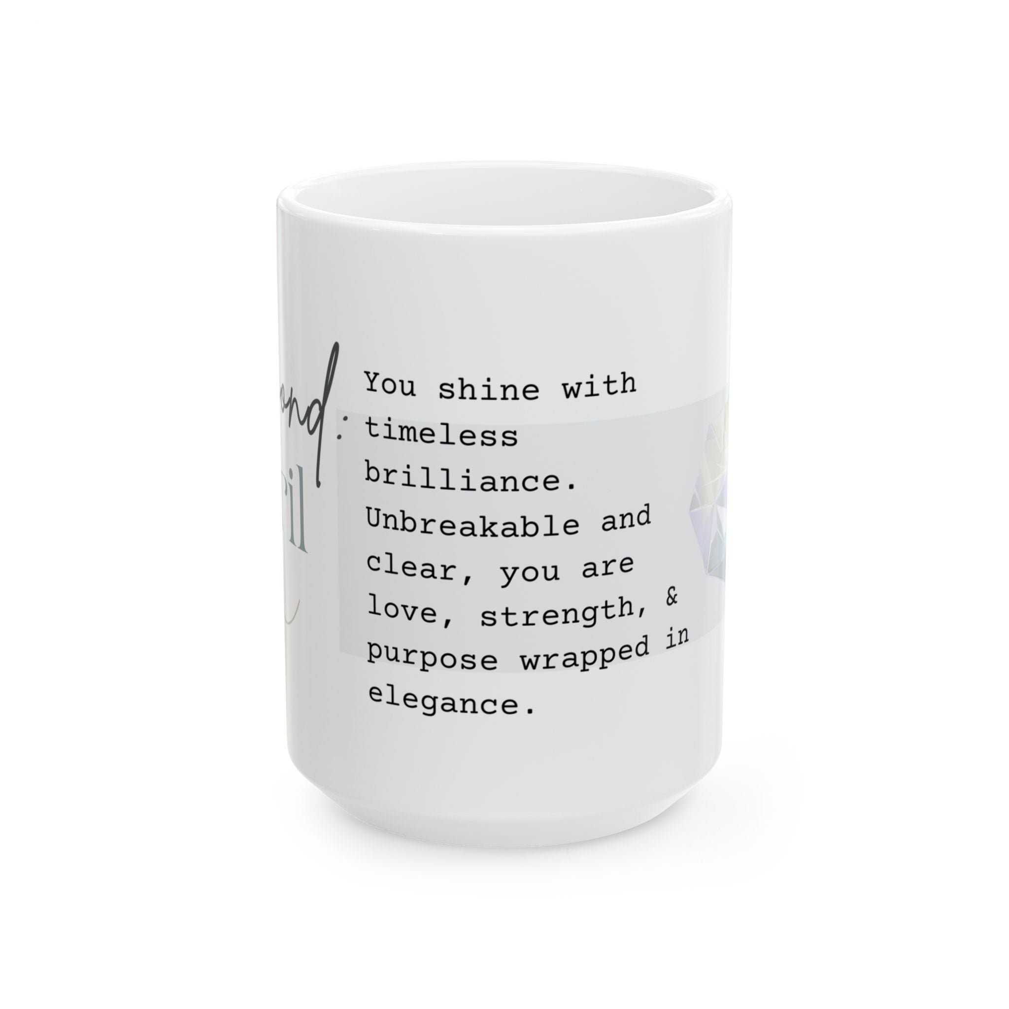 For the timeless and resilient—our April Birthstone Mug features the iconic diamond, a symbol of strength, clarity, and everlasting love. With its brilliant sparkle and elegant presence, this mug is a daily reminder of inner light and unshakable spirit. A thoughtful gift for April birthdays or anyone who embodies quiet power.