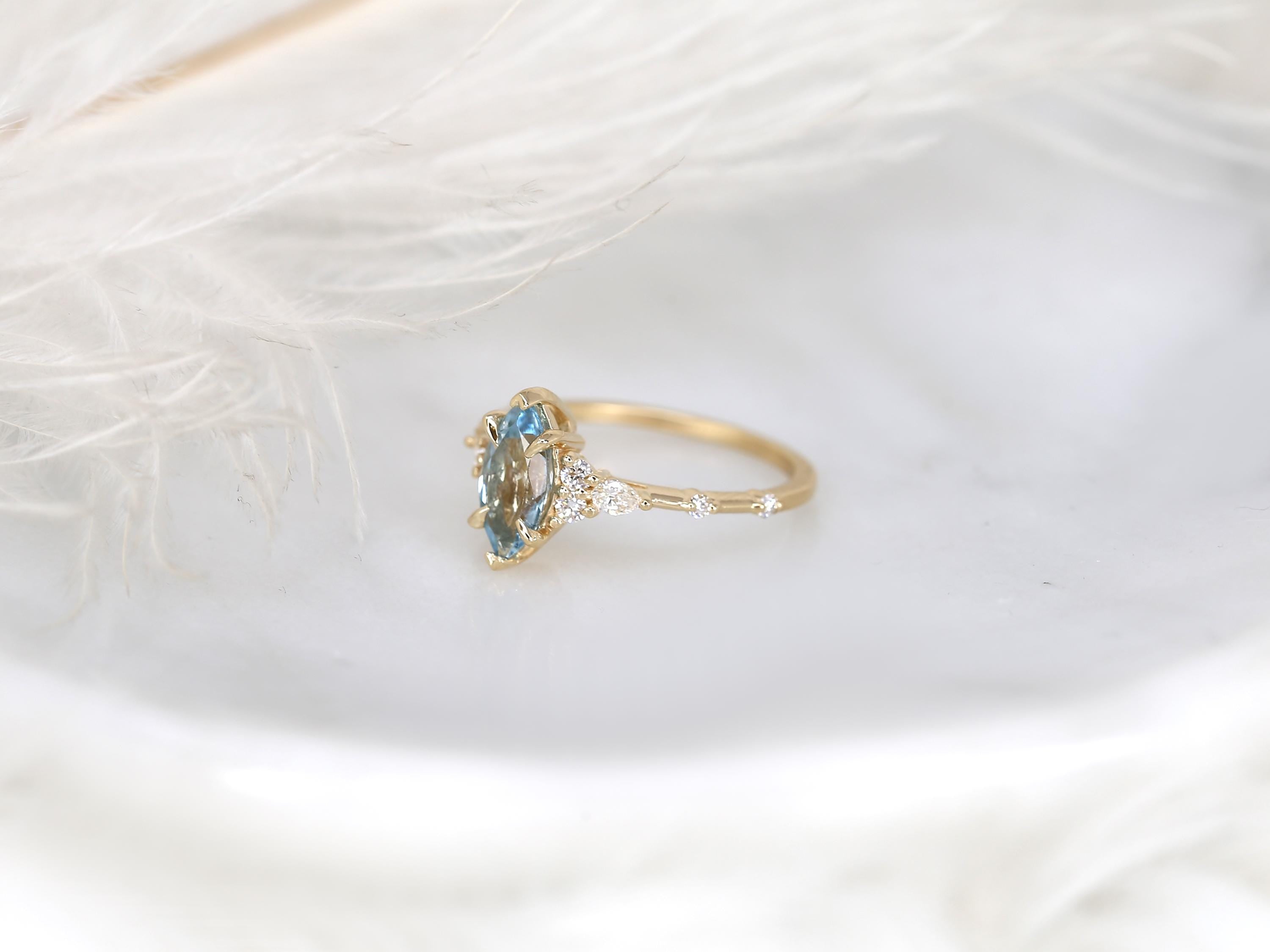 Astrid 10x5mm 14kt Aquamarine Diamond Marquise Cluster Ring