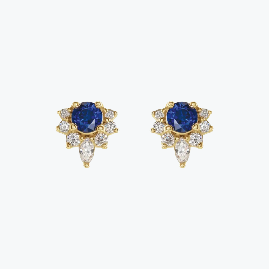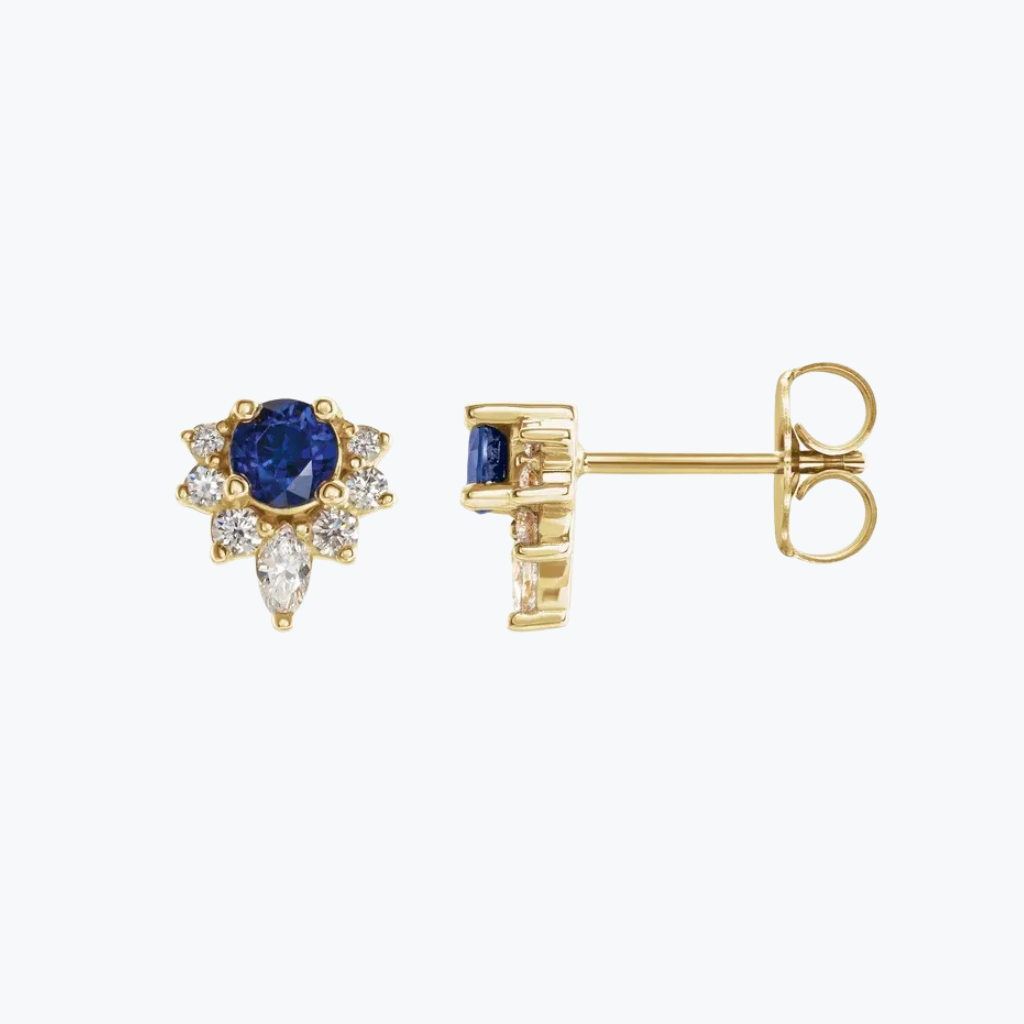 Inspired by the glow of a new day, the Autumne Earrings are a poetic take on birthstone jewelry. A center gem of your choice—like aquamarine, sapphire, emerald, or another meaningful stone—radiates from within a delicate half-halo of sparkling diamonds, reminiscent of a rising sun. Handcrafted with care in 14kt gold of your choice (yellow, rose, or white), this pair makes a heartfelt gift or a timeless addition to your own jewelry story.