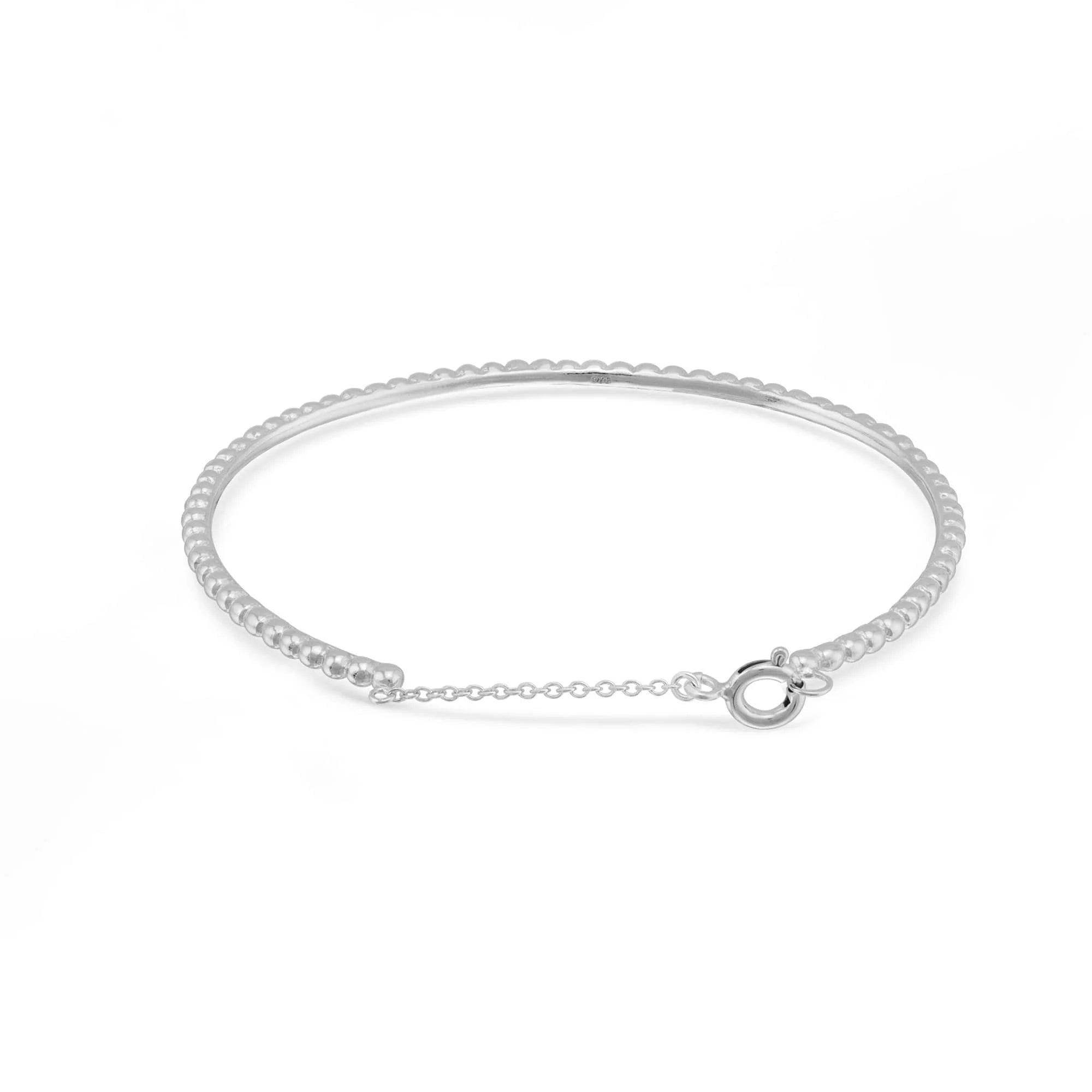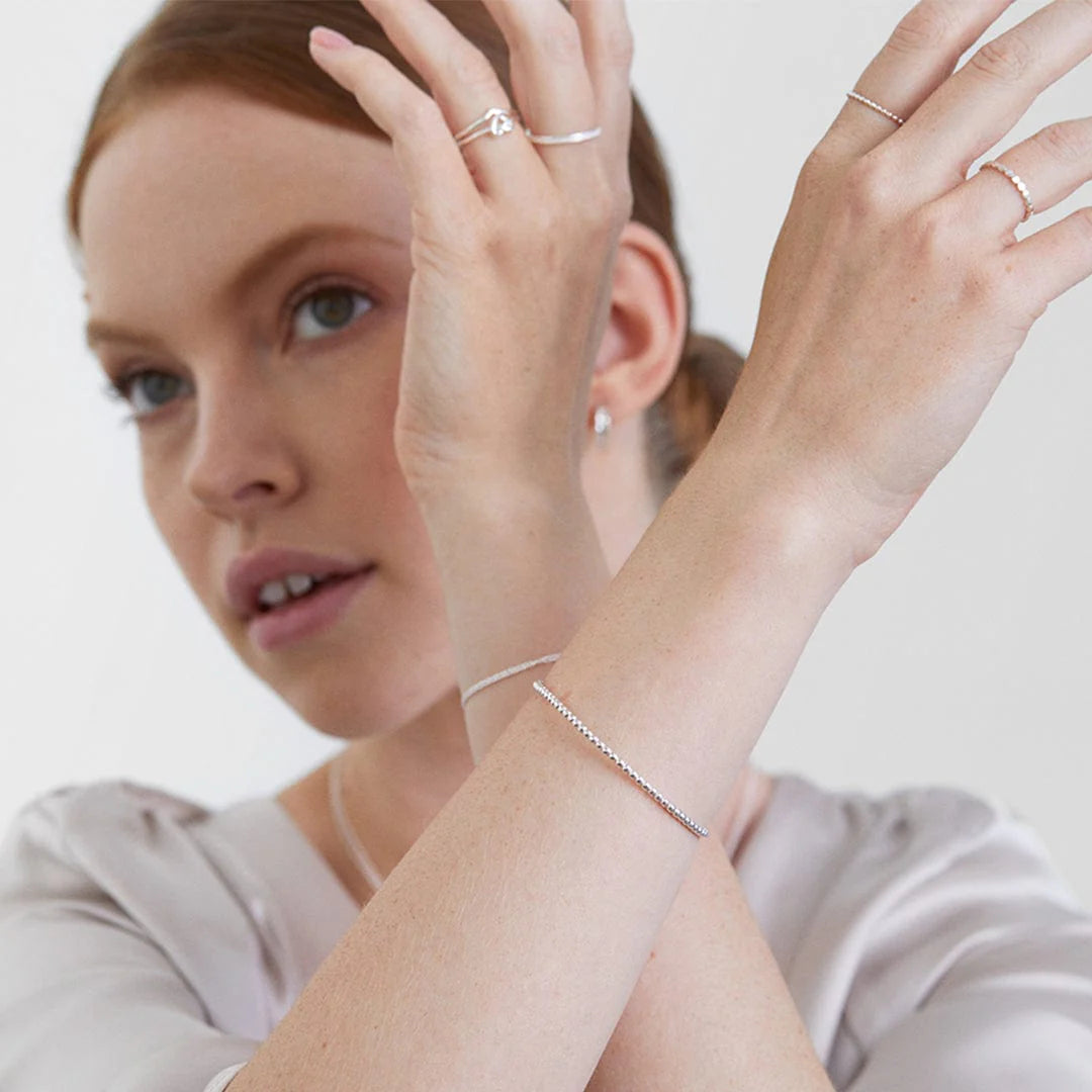 The Beaded Dot Bracelet blends simplicity with texture for a look that feels effortlessly refined. A strand of delicate beads forms a minimalist bangle design, finished with a chain for just the right touch of flexibility and comfort. Perfect for layering or worn alone as a quiet statement, this bracelet brings timeless charm to any style. Available in sterling silver or gold-plated over silver for a touch of modern versatility.