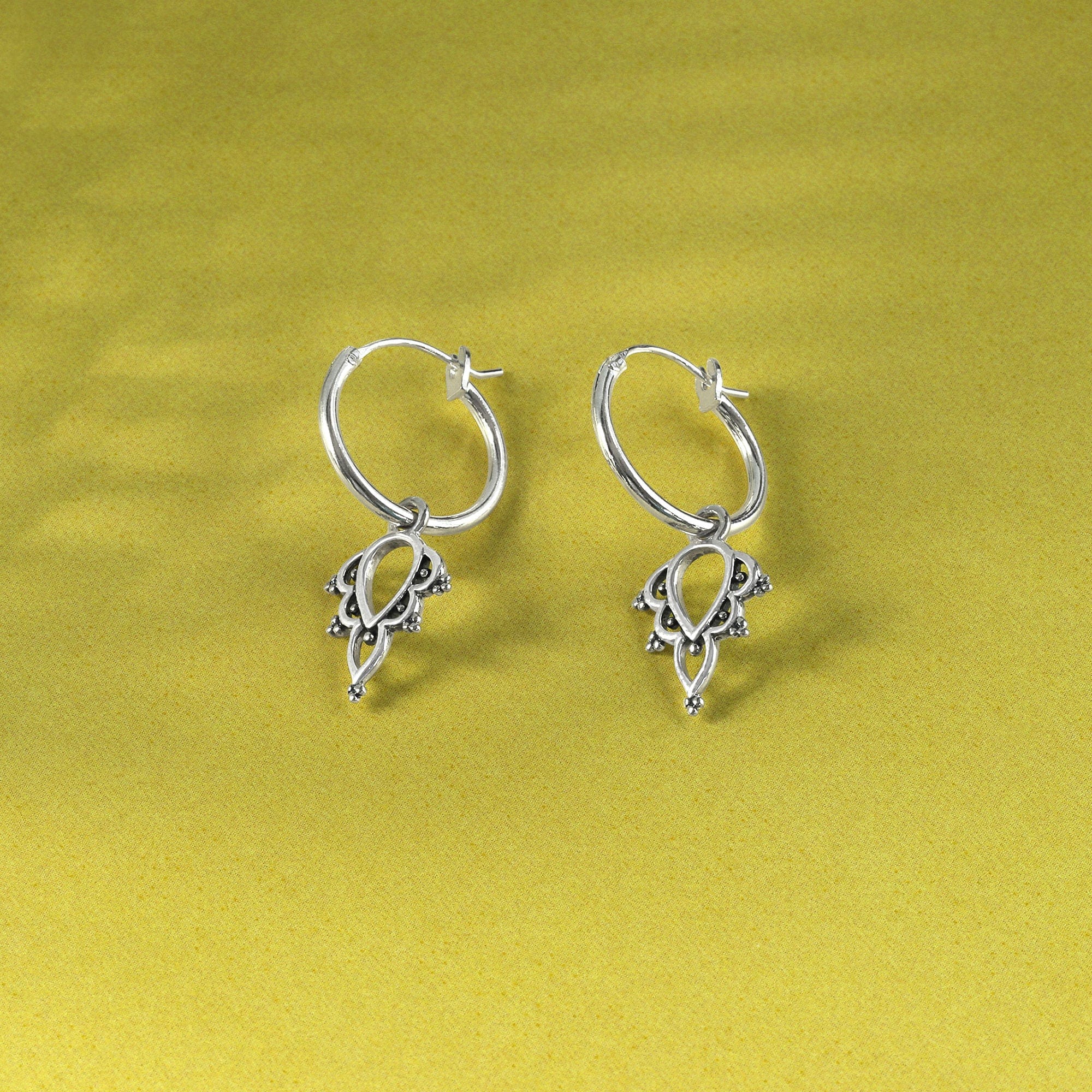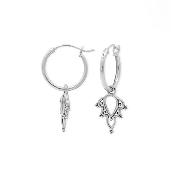 The Bohemian Hoop Dangle Earrings dance with effortless elegance. Each silver charm features a lace-like pattern that captures the spirit of bohemian artistry—feminine, free, and timeless. Lightweight and full of movement, these earrings bring a touch of wanderlust and romance to any look. Perfect for everyday wear or dressing up with ethereal flair, they embody the beauty of handcrafted simplicity.