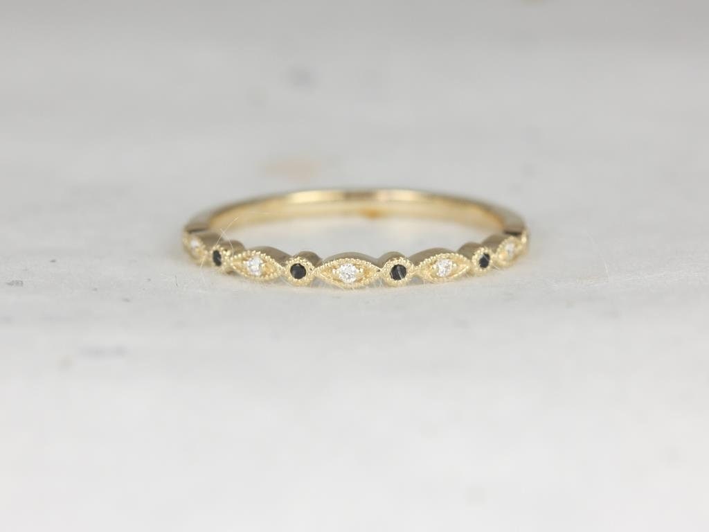 Gwen 14kt Gold Dainty WITH Milgrain Red Sapphire Diamond HALFWAY Eternity Ring