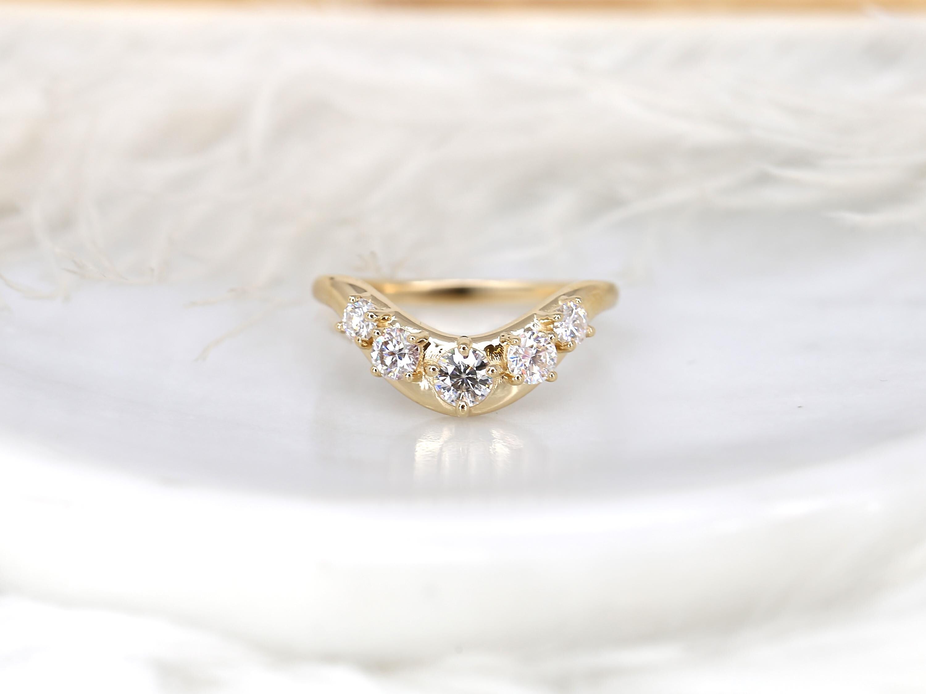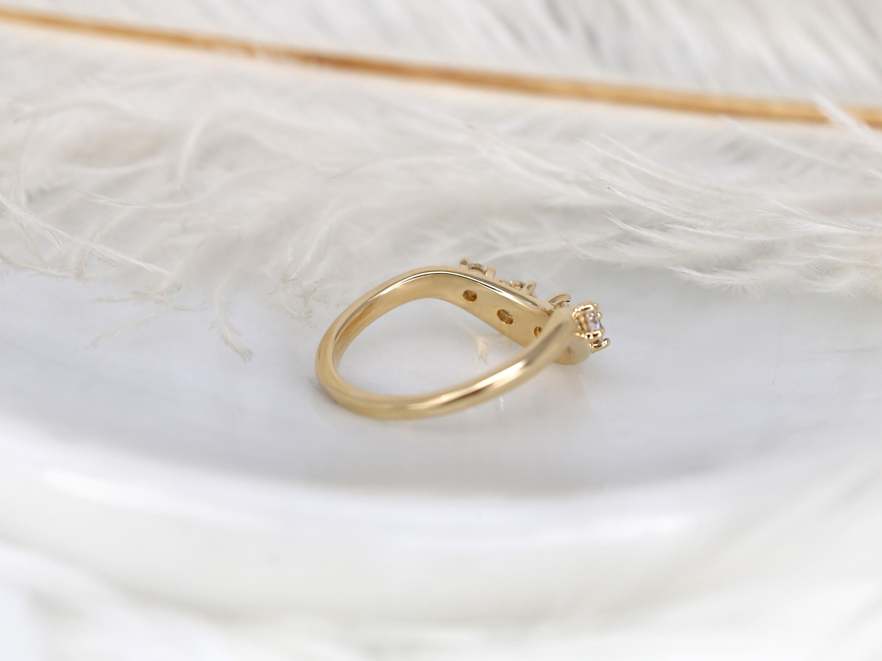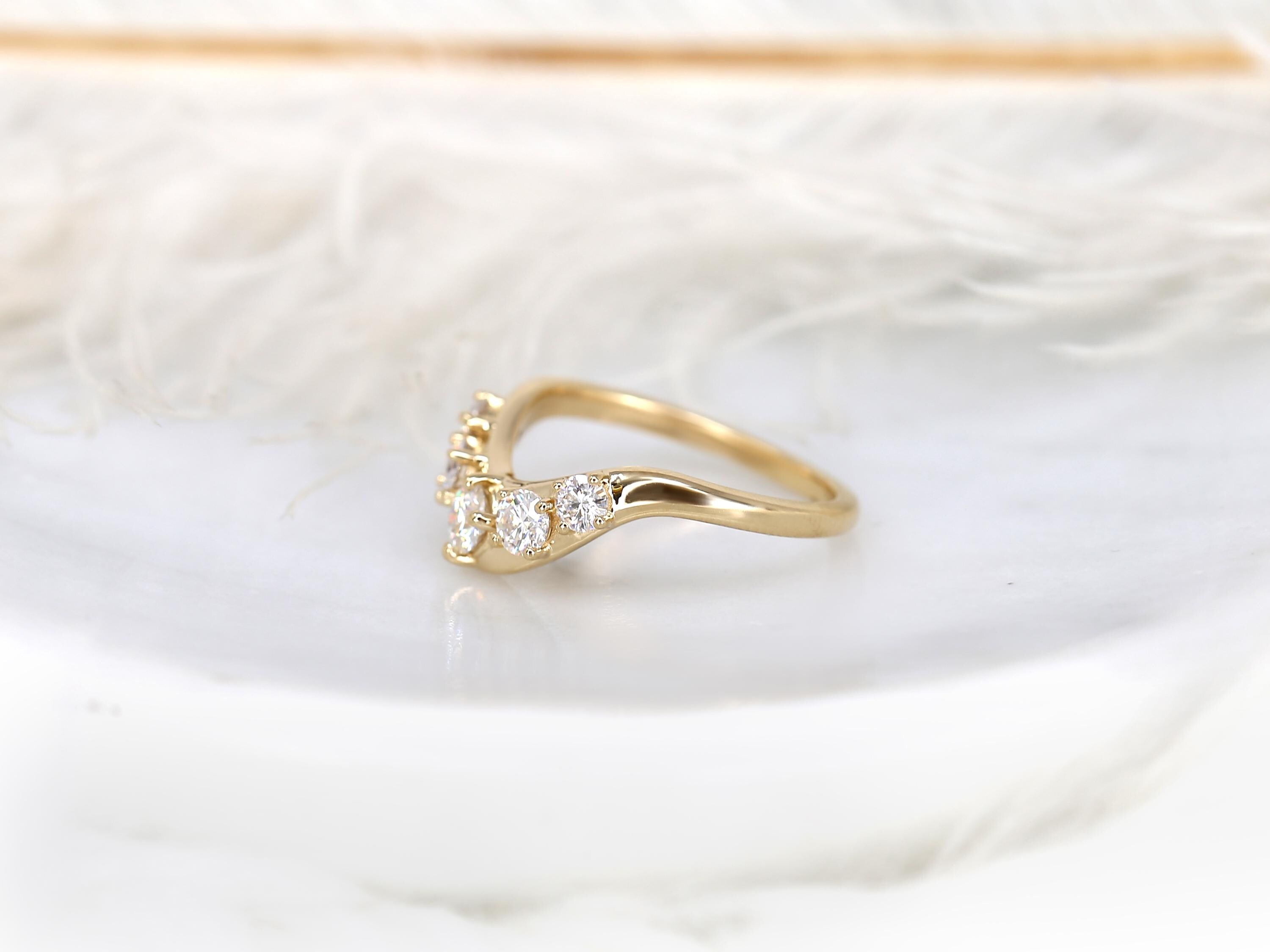 Inspired by our bold Saldana design, the Luca ring offers a softer, more romantic elegance. Its deep curve nestles perfectly around lower-set engagement rings, with graduated diamonds that shimmer in graceful balance. Handcrafted in 14kt gold in your chosen color, available with moissanite, lab, or natural diamonds—stunning alone or stacked.