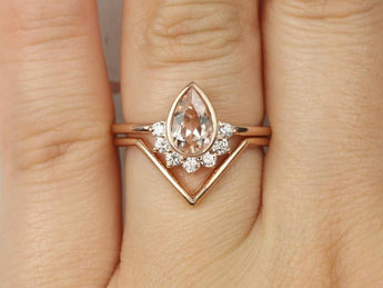 Oana 8x5mm & Femme 14kt Morganite Diamonds Pear Bezel Bridal Set