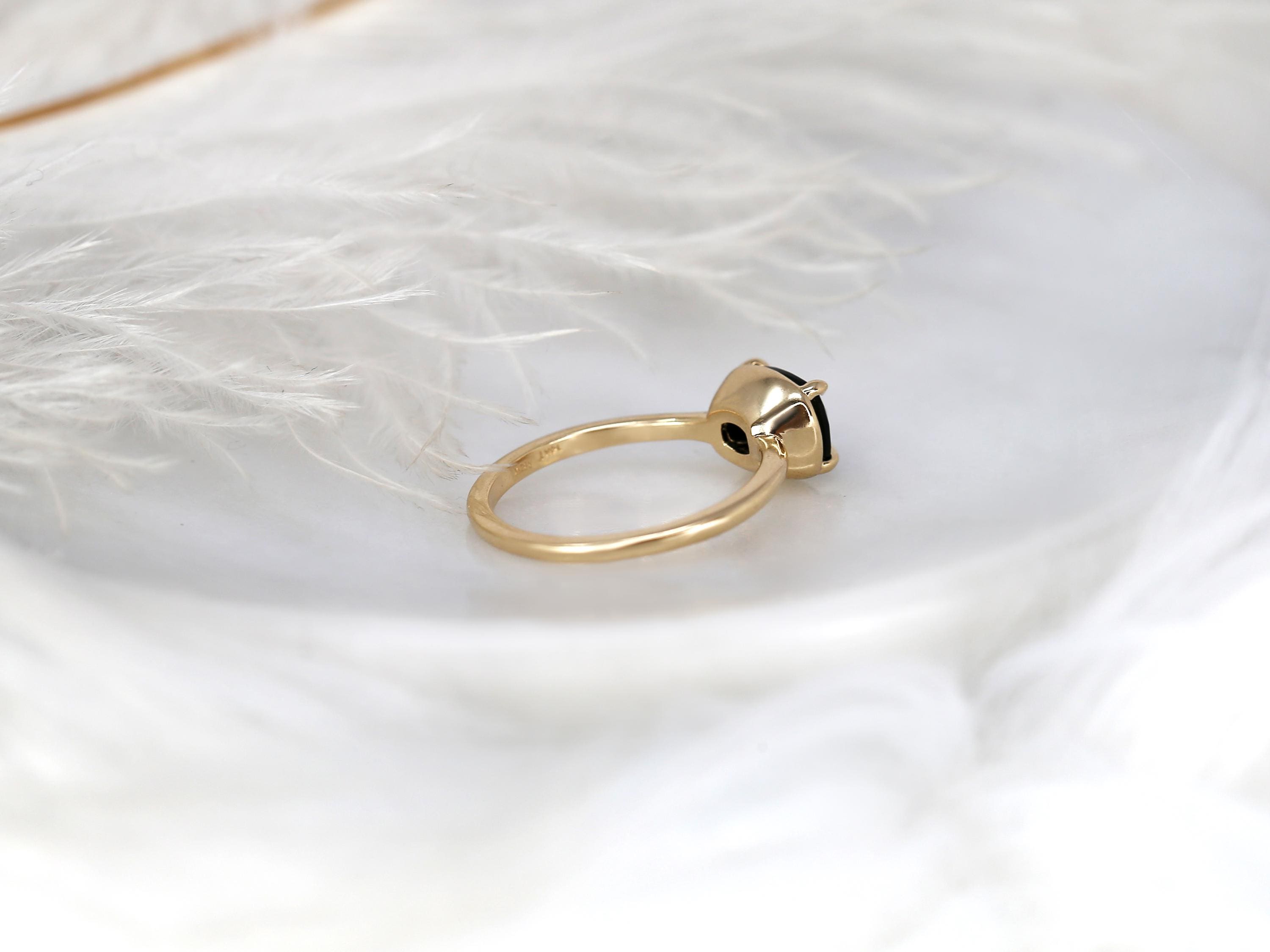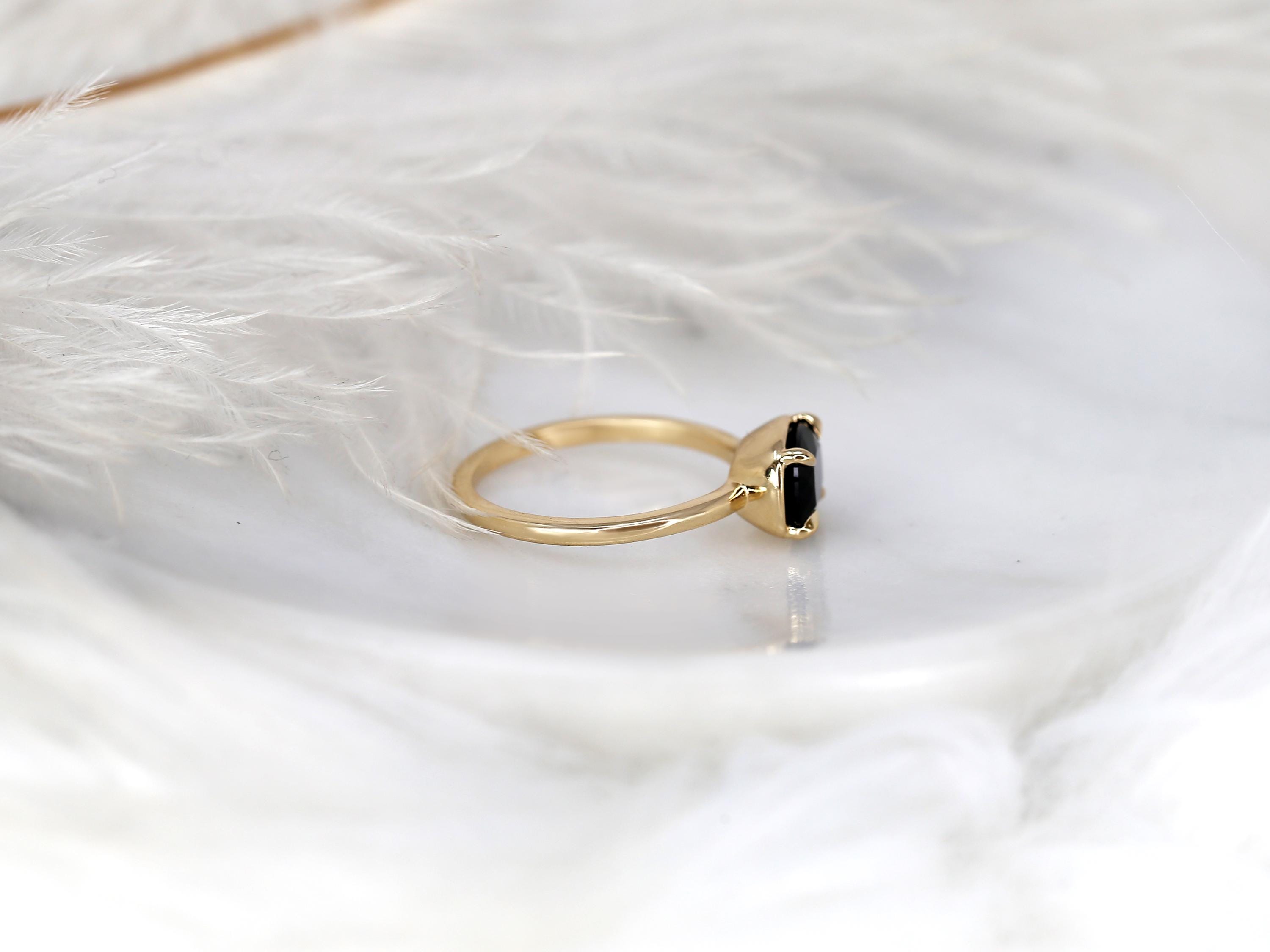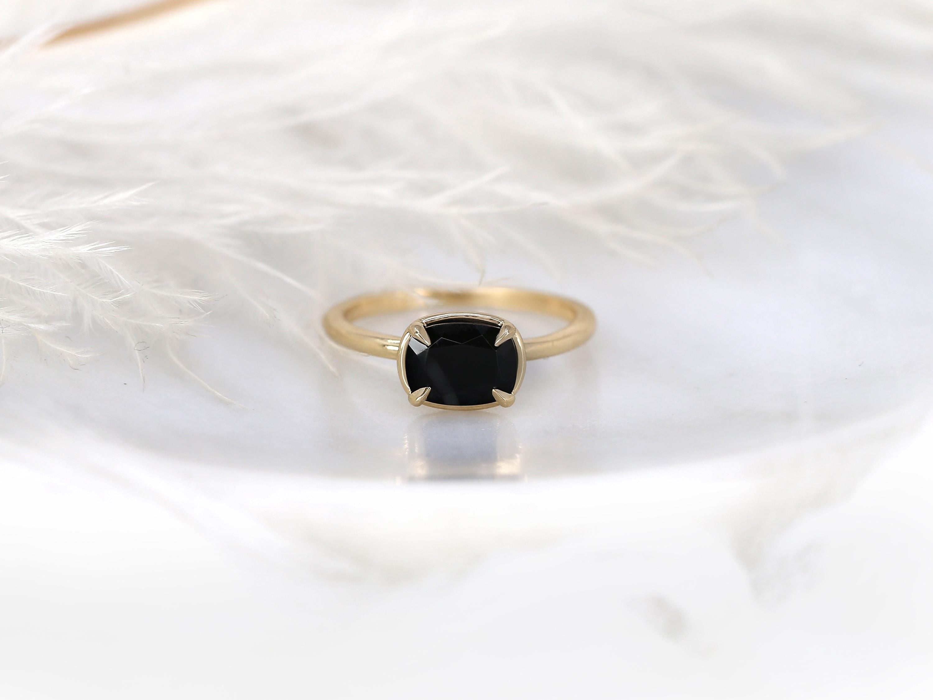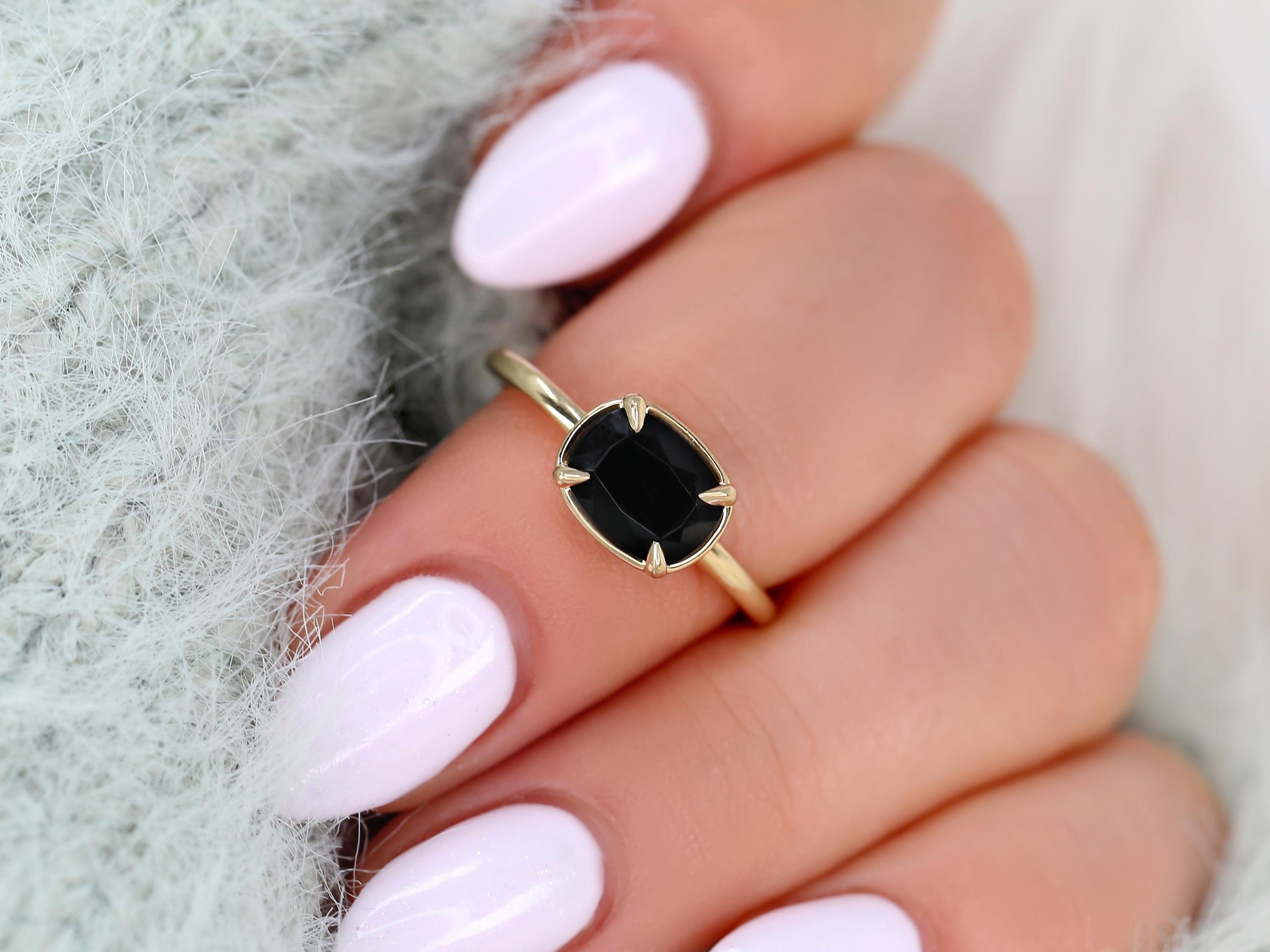 Petyon 8x6mm 14kt Onyx Cushion Solitaire Ring