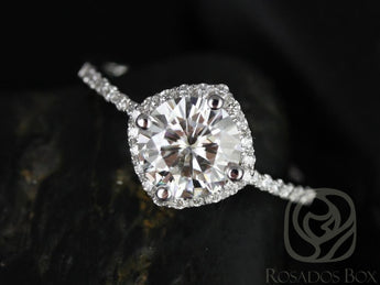 1.25ct Kitana 7mm 14kt Gold Moissanite Diamond Kite Set Dainty Pave Cushion Halo Ring