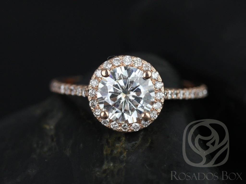 SALE 1.25ct Kubian 7mm 14kt WHITE Gold FB Moissanite Diamond Halo Dainty Engagement Ring