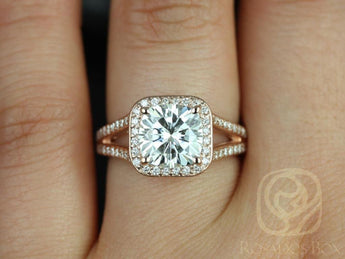 2.40ct Diana 8mm 14kt Rose Gold FB Moissanite Diamond Cushion Halo Split Shank Bridal Set