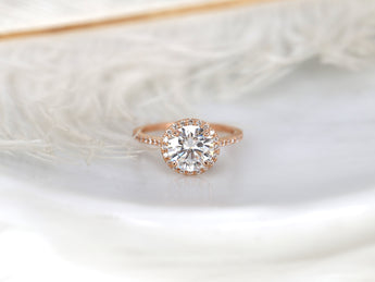 2ct Kubian 8mm 14kt Rose Gold FB Moissanite Diamonds Round Halo Ring