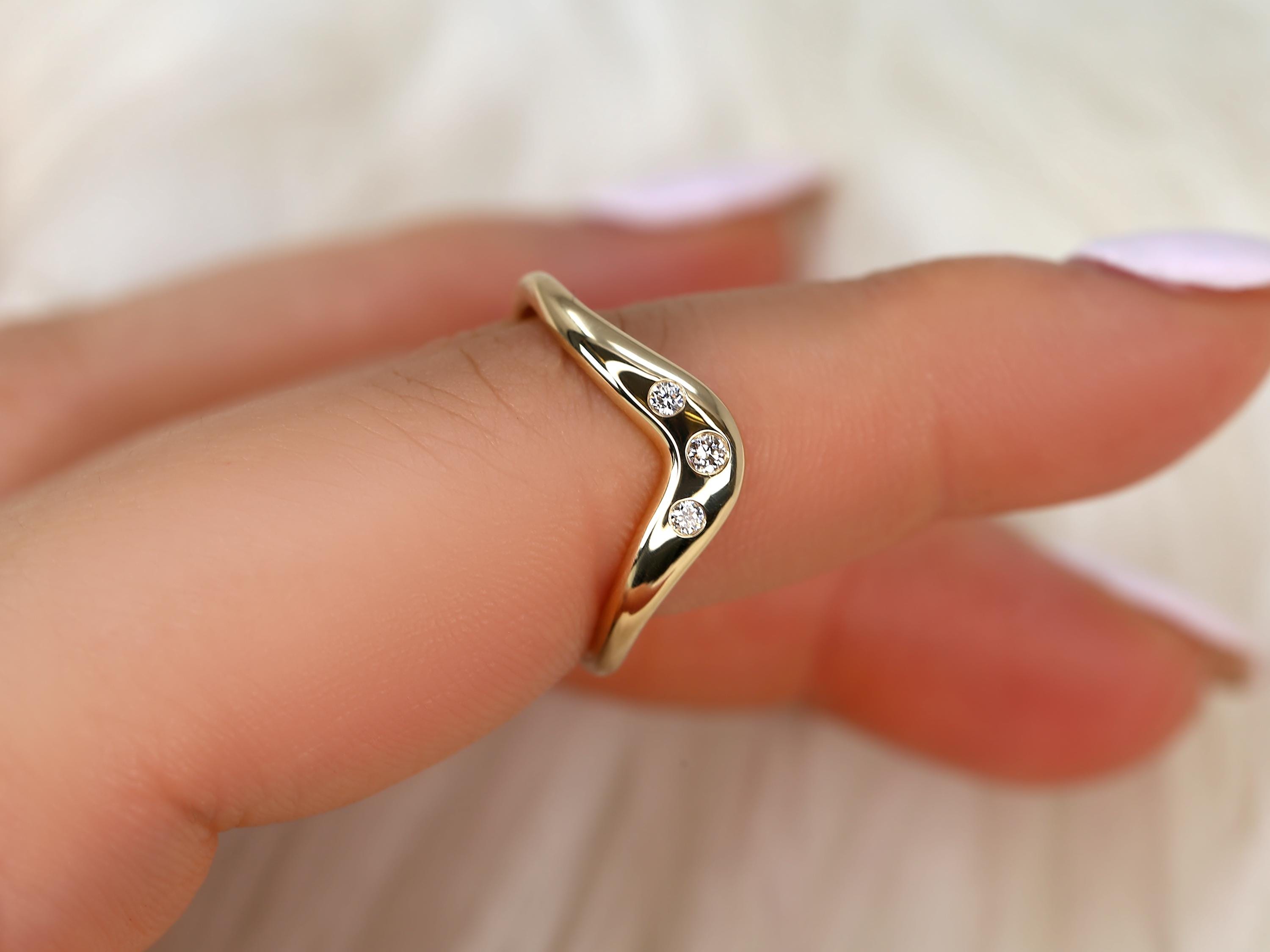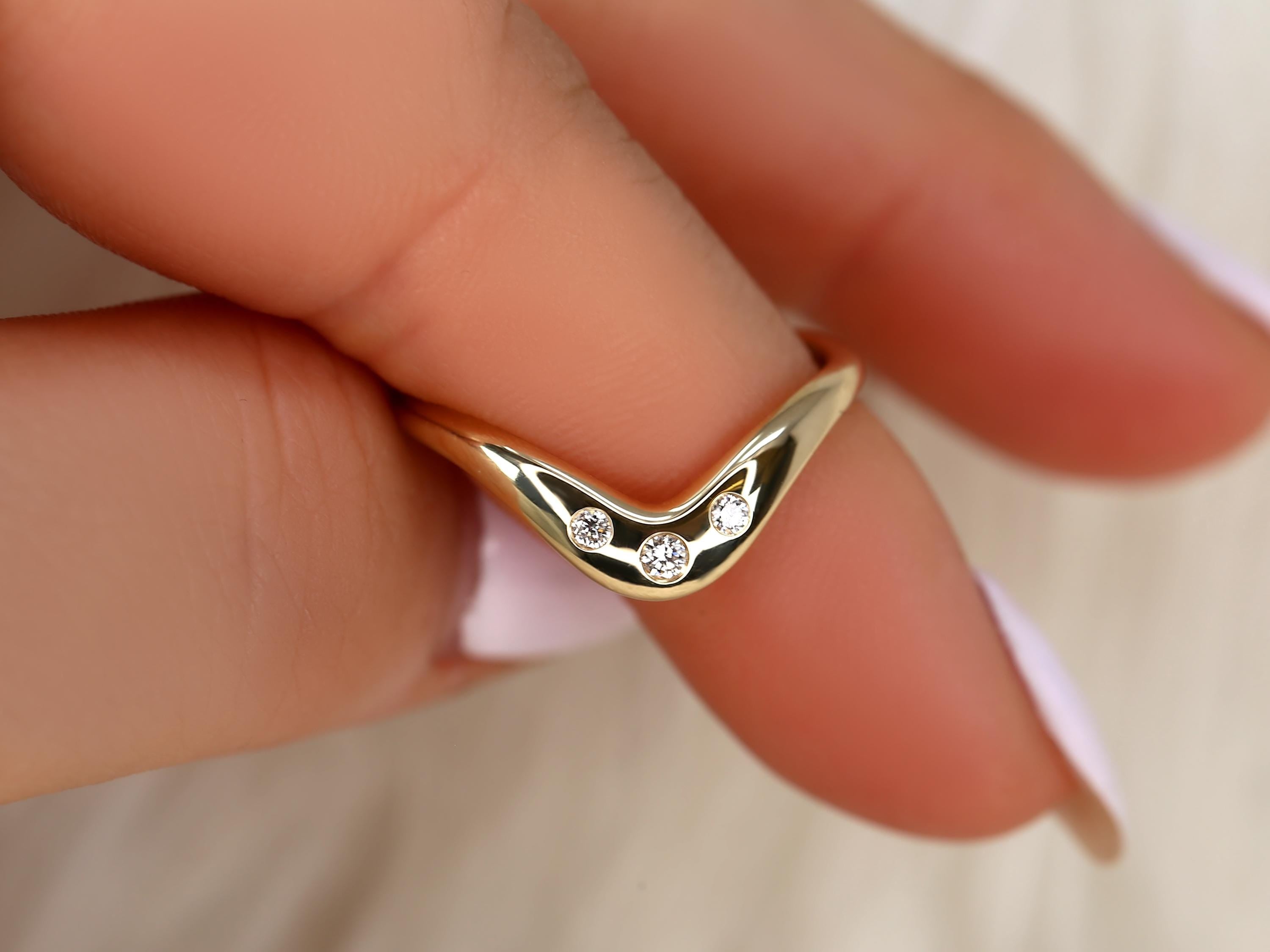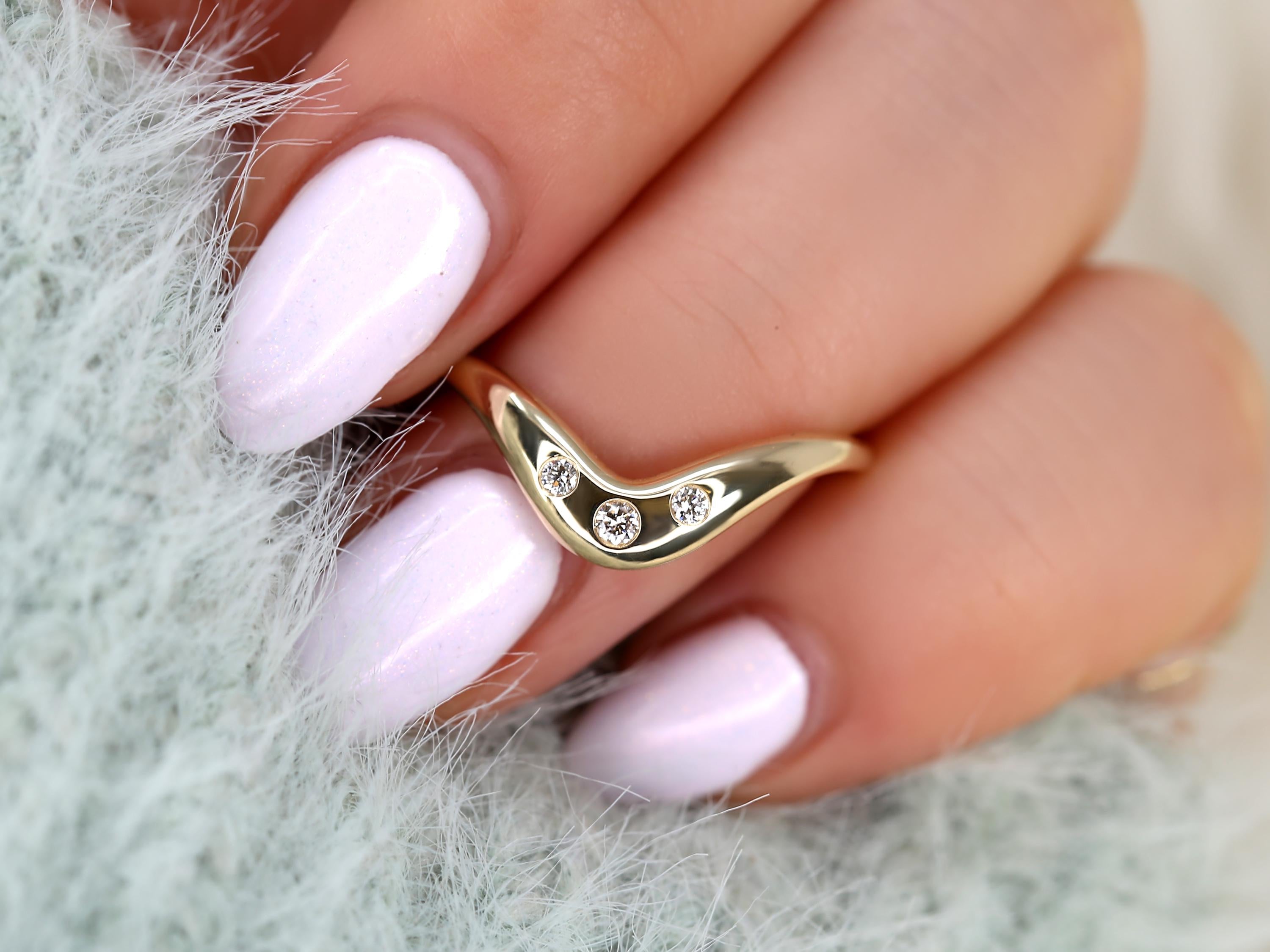 The Tetra ring is a graceful nod to the beauty of time and connection. Inspired by our beloved Merida band, this nesting design features three burnished diamonds set along a gentle curve—symbolizing the past, present, and future. Smooth and snag-free, it layers beautifully beside solitaires or shines as a meaningful anniversary or push gift. Available in 14kt gold in your choice of color, and customizable with colored gemstones, each ring is lovingly handcrafted in our Chicago studio.