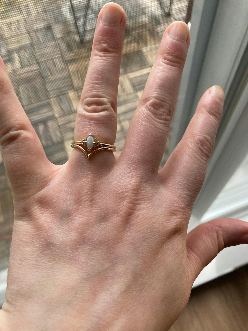 Elegant solid gold chevron band - Nest seamlessly with your cherished rings. A blend of classic design and understated beauty.